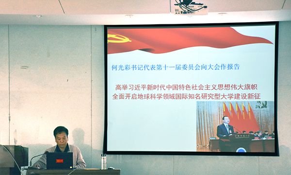 陈飞指出,学校未来发展的宏伟蓝图已经绘就,mk网页版“双一流”建设已经启动,全院教职工都要以习近平新时代中国特色社会主义思想为指导,把全面贯彻落实“十九大”精神和学校第十二次党代会精神放在首要位置,切实把思想和认识统一到学校第十二次党代会精神上来,切实把智慧和力量凝聚到实现第十二次党代会提出的奋斗目标任务上来,在学校新一届党委的坚强领导下,以全面加强党的建设为统领,全面落实立德树人根本任务,进一步解放思想、深化综合改革、追求学术卓越,进一步提升教育教学、科学研究、社会服务水平,努力开创各项工作新局面,为把学校建设成为地球科学领域国际知名研究型大学生作出新的更大的贡献。
