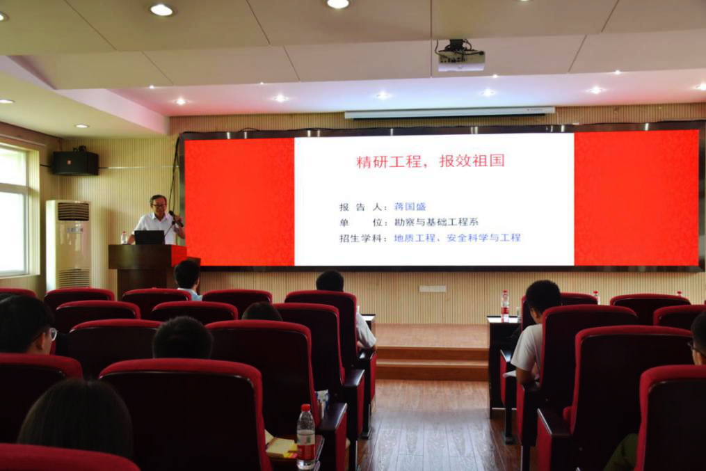 原mk网页版院长、俄罗斯外籍院士、学科带头人蒋国盛教授以“精研工程,报效祖国”为题,详细介绍了个人团队及取得的成绩、学科建设发展等内容,并以事业心、责任心、立大志、荣誉感为关键词对广大学子深情寄语,向他们抛出橄榄枝,欢迎他们加入地大,加入mk网页版。
