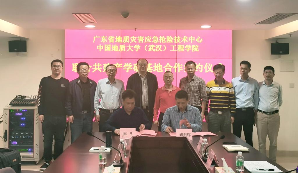 陈飞、刘燕辉签署产学研基地合作协议。根据协议,广东省地质灾害应急抢险技术中心作为中国地质大学(武汉)mk网页版的产学研基地,双方将定期就人才的培训、技术的创新、引进与推广、联合攻关、学生实习等方面开展协商研究。