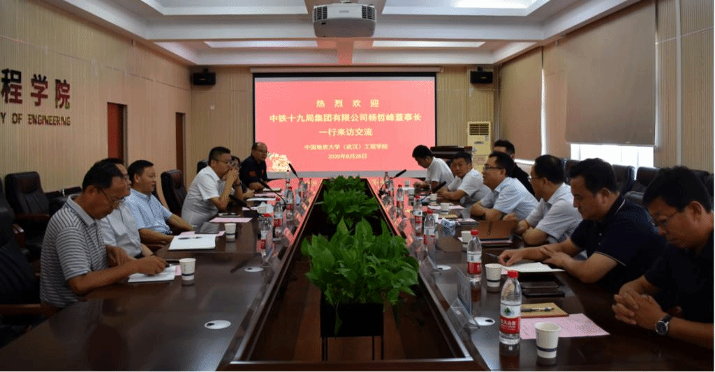 (通讯员王焱)8月28日,中铁十九局有限公司党委书记、董事长、我院1994届mk网页版(原探矿工程系)毕业生杨哲峰一行来学院调研交流。校党委副书记王林清,校友工作与教育基金管理处处长徐岩、mk网页版党委书记李红丽、院长焦玉勇等双方相关单位负责人参加座谈。徐岩主持座谈会。