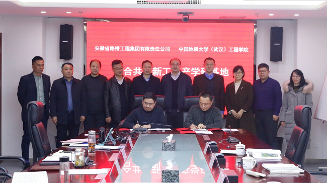 会议商定,双方需要进一步强化对口联络机制,充分利用安徽路桥集团的施工、检测、设计产业链优势、市场优势和管理优势,结合中国地质大学(武汉)的学科优势、人才优势和科研平台优势,积极开展新工艺、新材料、新技术研究,加快技术成果转化,实现科技增效;深化校企协同育人,组建跨学科、多学科创新团队,共同打造高层次产学研协同创新平台新载体,并签订了《联合共建新工科产学研基地合作协议书》。