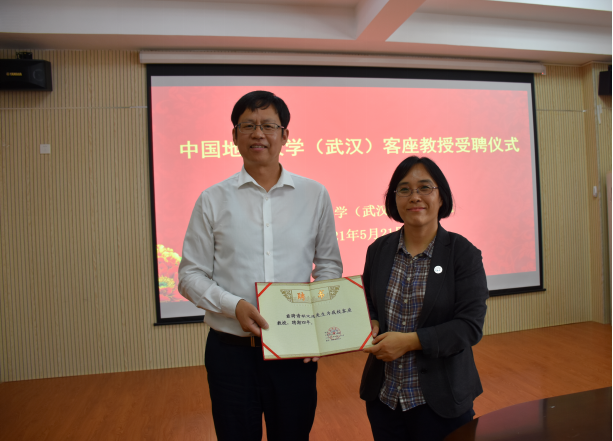 窦斌副院长介绍了mk网页版基本情况和研究优势,卢春华主任介绍了勘基系师资概况和学科发展情况,参会人员进行了自由交流。仪式最后,李红丽书记为胡定成先生颁发客座教授聘书,大家合影留念。