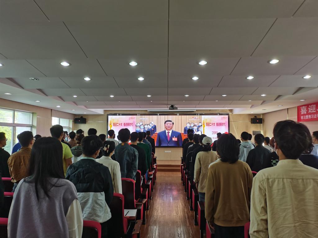 mk网页版党委书记李红丽,院长焦玉勇,副院长王亮清、倪晓阳、章广成,院党委副书记高晓东,各教工党支部书记、主任,院直机关全体工作人员及辅导员在工程楼315集中收看,各系(中心)教工党支部在各系会议室集中收看,学生党支部、团支部代表在工程楼418报告厅集中收看,窦斌副院长及学院代表等在东区教学综合楼A0113集中收看,其他师生在各自宿舍、工作室、会议室等通过电脑、手机收听收看。