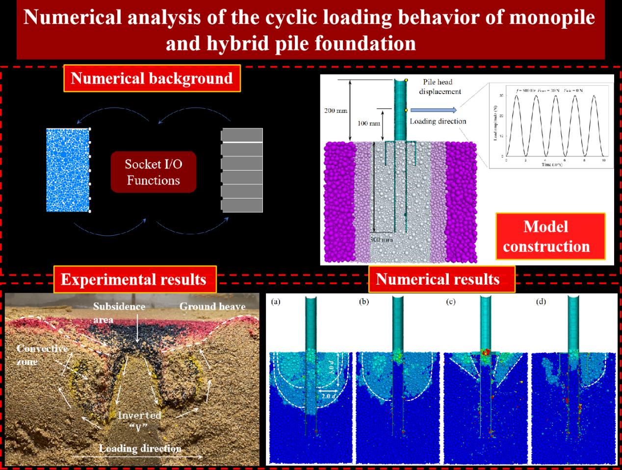 作为一种无污染、可再生的新能源,海上风能已成为我国实现“双碳”目标的重要战略选择。目前,我国已建成的海上风电项目中,超过60%全部或部分使用单桩基础。然而,随着我国海上风电工程建设复杂性的增加,传统单桩基础形式优势已不再明显,研发更加经济高效的风机基础成为推动我国海上风电事业发展的关键。基于上述背景,团队开展了一系列模型试验与数值模拟工作,对单桩基础和单桩复合基础的水平承载特性进行了研究。本文采用三维离散-连续耦合模拟方法,对海上风机不同基础形式在水平循环荷载作用下的承载变形行为进行了分析。相比于大部分研究仅关注于基础本身的承载变形,本文的工作同样关注地基土体的承载变形情况,尤其是基础振动引起的地基土体颗粒运移行为。研究结果能对海上风机基础与地基土体动力相互作用的分析提供一定参考。