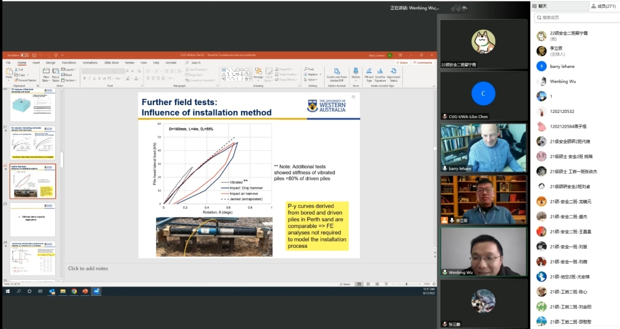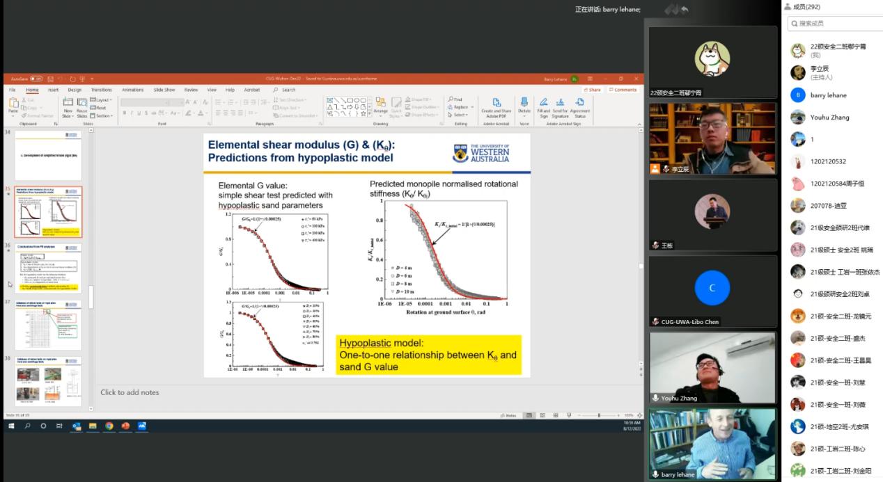 (通讯员 李立辰 黄静)12月8日上午,应mk网页版吴文兵教授与李立辰博士的邀请,西澳大学Barry Lehane教授做客工程文化论坛,为我校师生进行线上学术报告。此活动为中国地质大学(武汉)70周年校庆系列学术活动之一。mk网页版勘察与基础工程系博士后李立辰主持报告,300余名师生与行业专家参加了本次活动。