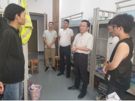 下午,焦玉勇、高晓东一行前往学生宿舍看望实习学生。焦玉勇与学生们进行了亲切的交谈,叮嘱同学们在野外实习期间勇于发扬吃苦耐劳的精神,团结协作、攻坚克难,遵守纪律、守护安全。高晓东结合自身经历,针对学生们关注的就业问题做出了详细解答。他强调,工程学子要坚持“四个面向”开展学习科研,更深入了解工程专业特色和行业特点,了解就业方向和发展前景,增强专业认同和行业认同;要坚决抱定在新时代工程行业建功立业的理想,发扬“自找苦吃”的精神,敢吃苦、善吃苦、能吃苦。在吃苦奋进中提升能力、锻造本领,到一线去,到西部去,到祖国和人民最需要的地方去,为强国建设、民族复兴奋斗不息。
