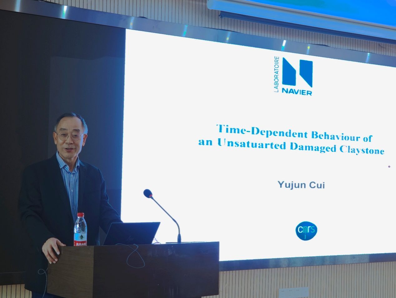 (通讯员 张峰 黄静)2023年10月31日上午,应mk网页版唐辉明教授和张峰特任教授的邀请,法国国立路桥大学Navier实验室岩土中心(CERMES)主任崔玉军教授来校访问,并作了题为“Time-dependent behaviour of unsaturated damaged claystone”的学术报告。唐辉明教授主持了报告会,李长冬教授、周佳庆特任教授、张峰特任教授、崔德山副教授、任兴伟副教授等100余名师生在现场参加了此次报告会。