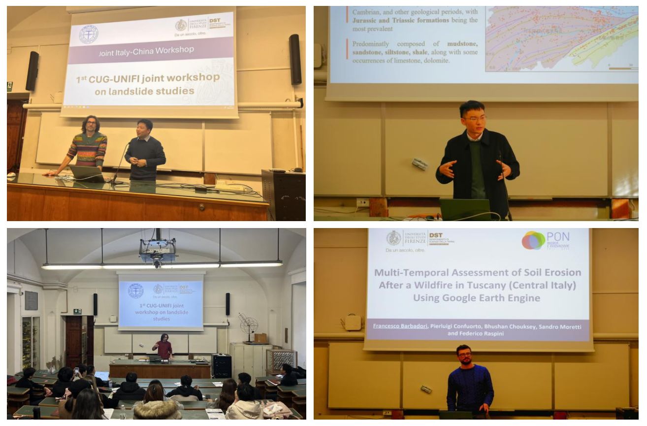 1月8日至9日,mk网页版师生和佛罗伦萨大学师生开展了为期2天的中意滑坡研究联合研讨会。mk网页版李德营教授、刘书豪老师与朱仕林、佘祥杰、王凯等博士生和佛罗伦萨大学Samuele Segoni教授、 Nicola Nocentini、 Francesco Barbadori、Istan Szakolczai等博士连续开展了十余场专题讲座,内容涵盖“高度植被覆盖地区潜在滑坡的识别”“基于机器学习方法的滑坡时空预测”“考虑地质环境空间差异性的区域滑坡降雨阈值研究”“使用谷歌地球引擎对托斯卡纳山火后的水土流失进行多时间尺度评估”等主题,两校师生就上述主题进行了广泛深入的研讨交流。