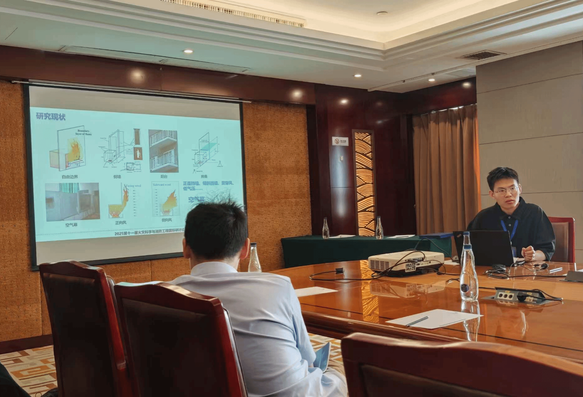 中国工程院院士、火灾科学与安全工程专家范维澄在主旨报告中聚焦“智慧韧性城市”建设,提出城市需具备“承受、适应与快速恢复”能力,以应对极端灾害、恐怖袭击等超常规风险。会议以“开放共享·智慧韧性”为主题,围绕火灾动力学机理深化、智能消防装备研发、新能源火灾风险迭代等核心议题展开深度对话,聚焦于火灾科学前沿挑战,共设立火灾安全评估、烟气防控、灭火救援、智慧消防与探测报警、新能源火灾、受限空间火灾防控等12个分论坛,贯通基础研究、技术创新与实战应用全链条,为全球火灾防控事业注入多元智慧。我院共6名师生在分论坛进行了汇报交流。